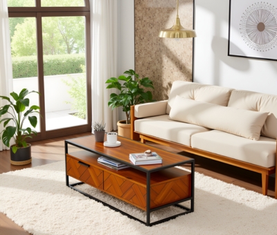 Solid Acacia Wood Nightstand with USB Charging Drawer – Mid-Century Bedside Table