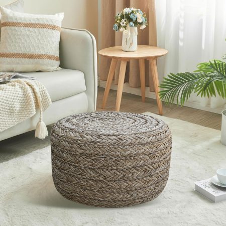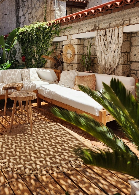 Light Grey Rope Patio Conversation Set with Acacia Wood Coffee Table – Modern Outdoor Seating