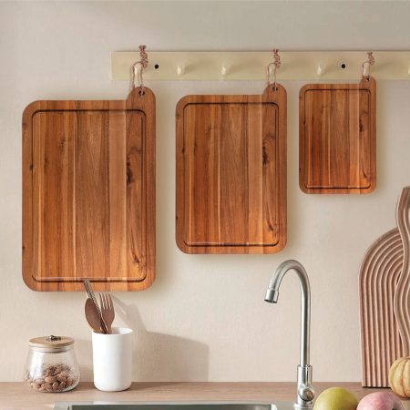 Acacia Wood Cutting Board Set of 3 – Durable Kitchen Chopping & Serving Boards, Multi-Size Food Prep Boards