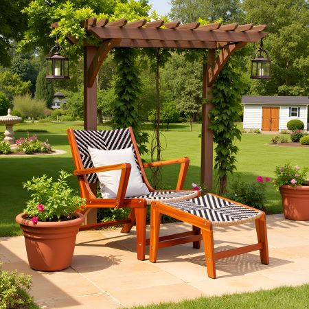 Acacia Wood Patio Lounge Chair with Footrest – PE Wicker Outdoor Relaxation Set