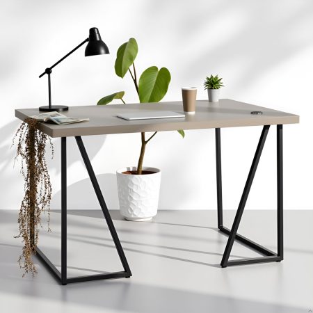 Acacia Wood Desk with Powder-Coated Steel Legs and USB Charging Port